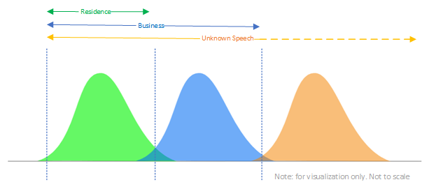 As you can see from the above illustration, we calculated the statistical average for HUMAN RESIDENCE is below 1800 ms, HUMAN BUSINESS to be between 1800 ms and at most 3000 ms, and anything longer than that is most likely a recorded message of some sort, so is classified as UNKNOWN SPEECH. The decision as to how to handle UNKNOWN SPEECH classification is very much implementation dependent, so it is up to your application to determine how to respond to these classifications.