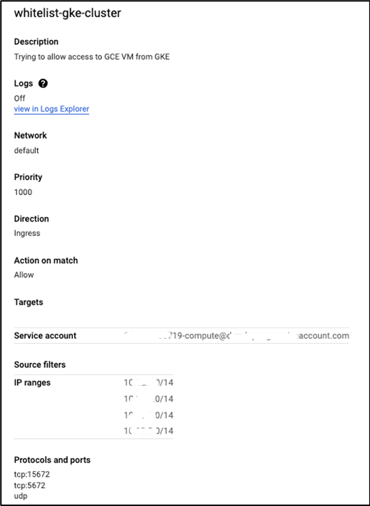 GCP does not automatically create the firewall rule required for RabbitMQ communication. You must manually add a VPC firewall rule to allow the necessary traffic between nodes.